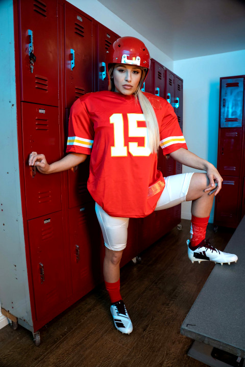 Adorable Bailey Brooke is cheering on her boyfriend in a red and white cheerleading outfit - she shakes her pom-poms and jumps with joy! When the game ends, blonde Bailey refuge to the locker room to undress and that’s where she runs into long-haired Abella Danger. In all that football gear, Bailey mistakes fit Abella for one of the boys, which magnificent Abella is clearly not! Big-titted Bailey doesn’t know it yet, but tanned Abella is about to show her what kind of moves she’s capable of all the field! - "Girls Locker Room" #turningtwistys #twistys #abelladangerass