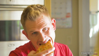 AJ's boyfriend Bill always wants to split everything exactly fifty-fifty, so she's extra annoyed when he eats the last slice of pizza that should be rightfully hers. The sexy blonde protests that her man is taking more than his fair share, so Bill offers to repay her by eating her juicy pie! After giving her a thorough pussy eating that more than makes up for the food, he's pretty sure she owes him a little something! AJ is happy to even the score with a ardent blowjob, and her lover decides to give her back double the satisfaction with his dick! Bill's tit-for-tat approach soon starts to grow on AJ as her boyfriend gives her a passionate doggystyle fucking, she returns the favor with an erotic footjob, and Bill brings AJ to the peak of ecstasy with an intense stand-and-carry! After Bill makes AJ cum multiple times before finishing with a facial, he won't forget that she owes him one next time! - ''Tit for Tat'' #babes