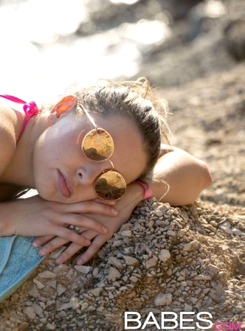 They're both excited to spend their day in a secluded alcove by the water without interruptions. After lathering up with suntan lotion and playing around a bit, the warm sunbeams lull Ally into closing her eyes. When Ally's eyes stayed closed, playful Victoria reaches into her lunchbox to pull out a surprise: a massive dildo! Ally wakes up with the dildo resting on her back, and counters with a double headed toy of her own to playfully prank Victoria back. The environment is just too much fun, too relaxing, and soon both girls are lying on the beach towel next to each other naked, playing with hot pussy and sucking on boobs. The waves might be beautiful, but no sight nearby is as breathtaking as these two babes getting busy. - ''Tan Lines'' #babes