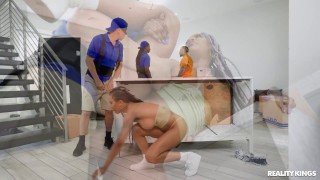 Demi Sutra's on her last nerve when her boyfriend acts like a dick during their move, ordering her around and blaming her for his own mistakes, so she decides to treat herself to a better dick... the one in mover Mick Blue's pants. She shows Mick a secret glory hole in some furniture as she sucks him and gets fucked doggystyle, then sneaks away when her BF comes back. Mick finds her playing with her pussy in the kitchen as she squirts all over the box he's carrying, and then he fucks her face and her box! Demi makes sure the new place is fully hers as she marks it with her squirt before taking the mover's load. #realitykings