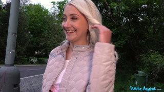 I was walking with my friend Martin when we saw a beautiful blonde Ukrainian woman named Helena Moeller. Helena was in Prague as a tourist, and was waiting for the bus to go to the center. Martin told Helena we worked with an advertisement agency to make swimsuit ads, and if she would like some money, we could do a little casting. Helena liked money and showed us her tits and butt, and then Martin asked her if she would suck my cock. Helena wanted a taste of Czech cock, so Martin passed me the camera and the blonde and I walked to an underpass where she sucked my dick. She was very horny for my cock, so she let me fuck her too, and then I covered her with a facial. - "Horny tourist hungry for Czech cock" #publicagent #fakehub