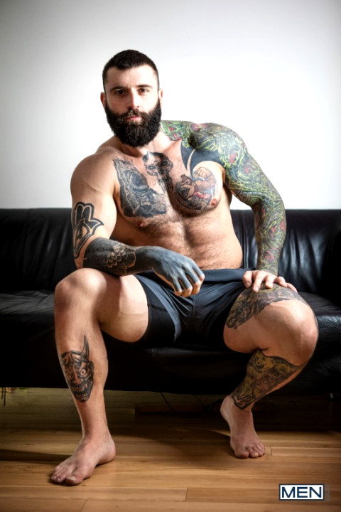 After months with no sex, Markus Kage starts getting jealous of his roommate Malik Delgaty's gay hookups... and maybe also horny over Malik's big dick and muscle ass. After peeking at Malik's sexy video call, Markus gets caught spying on him in the shower, and the burly gay top offers his bicurious bud a deal: a grapple sesh where the first to tap out gets fucked! Malik pins Markus, who eagerly sucks his cock and takes his first ever dick in doggystyle. Markus likes it so much, he rides Malik reverse, then takes it deep in piledriver till he cums and Malik pulls out and sprays him with hot jizz. - ''Bi-CuriAss'' #drillmyhole #men.com