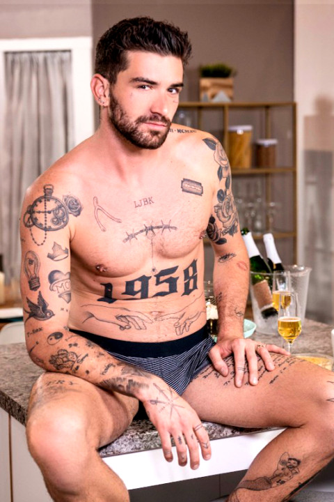 Chris Damned and his wife are throwing a birthday bash for his buddy Jack Hunter, but Chris would rather give the birthday boy a present of cock. He sneaks away to the bathroom to try to take care of his hard-on, but his wife drags him back to the party. As she's distracted chatting with JJ Knight, Chris flirts with Jack, squeezing the bottom's lush ass, then bends him over the counter and fucks him! Jack gets down behind the island to suck Chris's cock, and the guys sneak off to the bedroom where Chris penetrates Jack on the bed. JJ follows the sound of their moaning and sneaks in as Chris is fucking Jack piledriver, getting it on video! Jack rides Chris till he cums, and the guys try to sneak back to the party, but JJ stops Chris and shows him the evidence. They head to the bathroom, where Chris sucks JJ's big dick... till Jack comes looking for them and they invite him to join them! JJ fucks Jack doggystyle as he sucks Chris's cock, then both tops cum all over the bottom's face and in his mouth. - ''Big Fuck-Up in the Kitchen'' #str8togay #men.com