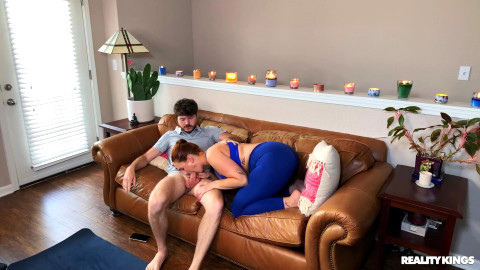 Delivery guy Liam Lilly interrupts curvy redhead Siri Dahl's yoga session when he shows up with a big package for her. He follows her up the stairs, staring at her booty in her tight yoga pants, and Siri notices that it looks like he's got another big package for her in his shorts! The hottie eagerly sucks his cock, then uses a toy on her clit as Liam delivers a deep pounding to her pussy.