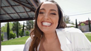 Cheerful Nolina Nyx has two satisfyingly big boobs and she's pretty proud of them! During an outdoor photoshoot for Big National Titties, she meets the horny Xander Corvus, who doesn't hesitate before drizzling lube on Nolina's delicious milk jugs, right there, under the sun. The lusty woman can't help but spread her legs just enough for Xander to slide his cock between her thighs. After such a tease, it's no surprise that Xander wants to take Nolina to a discreet place and get a taste of her promising pussy. - ''Big Tits, Nyx!'' #rkprime #realitykings