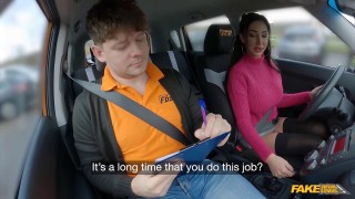 Today I picked up stocking-clad babe Laura Fiorentino for her driving test, and I was surprised when she passed the exam with flying colours. I got a little emotional, and when Laura saw my throbbing erection, she teasingly rubbed her hand over my crotch before zipping down my jeans and treating me to a fantastic blowjob! Afterwards, the raven-haired sex bomb exposed her huge fake titties and cushioned my dick between them, and then she sat her dripping wet snatch down on my lap and rode me expertly in cowgirl. Next, I banged the tattooed nymph in missionary position in the backseat of the car, which gave me a great view of her impressive rack! Following some sexy spooning, Laura stuck out her bubble butt so I could fuck her in doggystyle, and then I pulled out and spunked directly onto her pierced tongue! #faketaxi