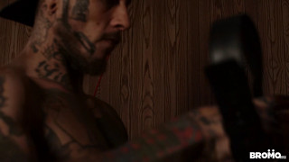Say what you will about the merciless tattooed top Bo Sinn, you can't deny he's a man of discerning taste. Bo chooses Trent's perfect ass from a line-up, teasing and slapping the tall stud's feet and hole while Trent lays half exposed through a cut-out in the wall. Pleased with Trent's responses, Bo showers his ass with a blast of hot piss before shoving his thick uncut dick into the wall-bound bottom's tight and ready butt. Bo fucks the submissive dude's hole so hard that the walls shake, relentlessly ramming him until he's ready to cover Trent's hungry hole with man's cum. - "Wall Stuffed Part 2" #bromous #men