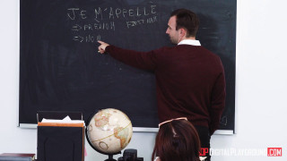In order to brush up on her language skills, Brooke Haze hires Alex Legend as a French tutor. Alex begins the lesson with some simple French phrases for Brooke to repeat, and the nice brunette starts with a solid foundation. Suddenly, Brooke hears a knock from the room next door, and while investigating, accidentally gets stuck in a hole in the wall! With maintenance unsure of when they can come get her out, Brooke thinks of a fun way to pass the time that involves her perky boobs, her propped up butt, and most importantly, a sloppy blowjob! Besides, she's stuck in the perfect position for doggystyle...why put that to waste? - "Stuck In The Wall Booty Call" #digitalplayground