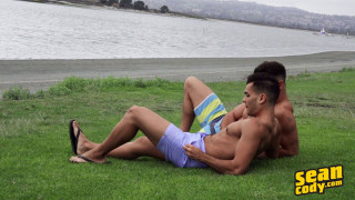 Brysen and Noah have known each other for about two years, since Brysen was running an underwear contest in Florida. "I ended up picking him as the winner of the underwear contest. And I invited him back to my room and fucked the shit out of him," Brysen confesses. Today, Noah says he's still got a crush on the Sean Cody hunk, and man's most looking forward to "Getting fucked really good." Brysen doesn't make Noah wait, bending him over and eating his butt before giving him a hard doggystyle pounding. Noah definitely gets what he wanted as Brysen fucks that hole till the bottom shoots a huge load, and Brysen adds man's own jizz on top! - "Brysen & Noah: Bareback" #seancody