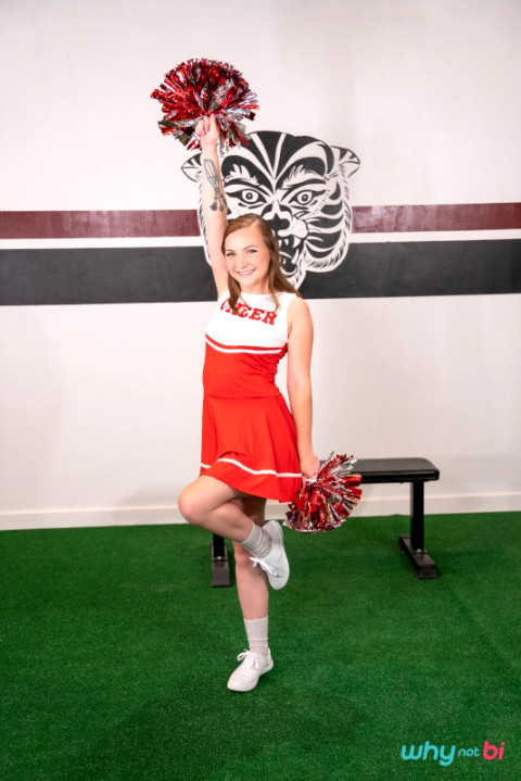 Vinny Blackwood and Aston Springs are two hard-bodied and horny jocks who have the perfect plan to squeeze on some hotties. Instead of spending all of their time and energy focusing on the big game, they decide to try out for the cheerleading team. What they forget to plan for is the petite redhead cheer queen Jenna Clove and her merciless approach to cheer team try-outs. After making the hung hunks bounce around for her amusement, Jenna sneakily tricks them planting a bro-code shattering kiss on each other. With Jenna's encouragement and athletic skills, she leads the two fuck-happy frat boys into a steamy bisexual threesome. - ''Cheer Up!'' #whynotbi