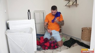 Angelo Godshack is doing laundry in the Fake Hostel when Ebony Mystique comes into the laundry room with her clothes. Angelo eye fucks the busty babe, and offended, she throws her underwear at him and tells him to do her laundry himself! Angelo is turned on by the smell of her bra and panties, and he starts to jerk off. When Ebony returns, she's flattered to see him turned on, and shows up just in time to see Angelo cum into a pair of her panties! Ebony takes out her big titties and shakes them for the stud, then pulls down her panties and sits on his face. Angelo licks Ebony's pierced pussy, then she gives him a sloppy deepthroat blowjob. Ebony has Angelo pound her pussy and please her, then takes all of his load onto her face and tits! - ''Clean My Panties!'' #fakehuboriginals #fakehub