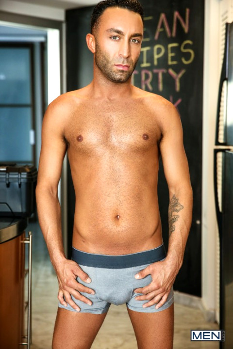 Diego Sans gets hot and bothered as he watches plumber Tony Portofino at work--all the plumbing terminology makes him want to lay some pipe! He rips open Tony's coveralls and rubs his ass, and the horny plumber shakes it as Diego grinds against him. The customer's always right, especially when he wants to rim his plumber, and Tony planks off the counter as Diego's tongue explores his hole, then the top puts him up against the cabinets and fucks him doggystyle. Diego pounds Tony as both guys lie suspended between the counters in a sexy bridge, then Diego penetrates the bottom missionary till he cums, then clears his pipes with a hot load on Tony's ass. - ''Clean Pipes, Dirty Talk'' #drillmyhole #men.com
