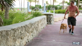 Hairy, athletic Diego Sans and tall, smooth-bodied Kip Johnson run into each other while out walking their dogs and decide that there is a better way for the two of them to get some exercise. They put away the dogs and take out the hogs, stripping down and getting nasty. Kip lays on his stomach sucking Diego's long dick, then lets the bearded, toned stud rim his smooth pink asshole. - ''Puppy Love'' #men #drillmyhole