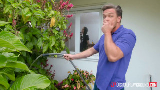 Kyle Mason has been getting very dirty in his apartment lately, so he hires naughty maid Bambi Black to give the place a little TLC. Unable to concentrate on his book with Bambi bouncing around, Kyle excuses himself to the yard and starts watering his plants...right in front of an open window for Bambi to seduce him! Grabbing a sponge, the raven-haired hottie soaps up her perky boobs and shakes her butt for Kyle until the hunk answers her call for dick. The maid was supposed to make the place clean, but Bambi and Kyle get very, very dirty! - "Maid For Loving You" #digitalplayground
