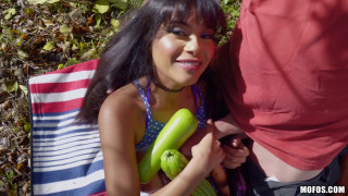 Petite teen Aryana Amatista is out collecting and picking some veggies from her garden. We stumbled upon her with her hands full and this innocent Filipino hottie was looking as cute as a key-and looked busty as fuck in her tight ass tank top! After talking her up a bit, I soon learned that Aryana loves big things! Soon, I convinced this sexy chick to lift her shirt and show off those massive tits! It wasn't before long that her pussy was dropping wet and eager for a cock to pound her naughty beaver! There's anything like a little outdoor garden salad, especially when it features the amazing Aryana as the main attraction! - "Garden Salad" #dontbreakme #mofos