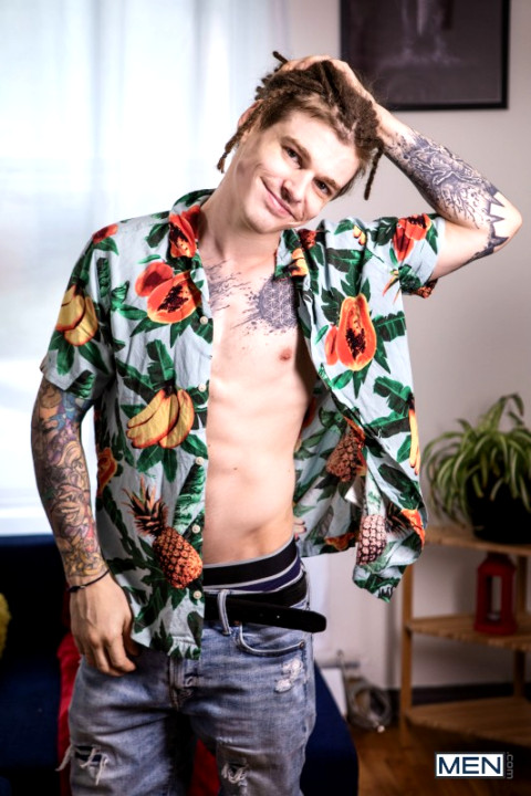 Tommy Tanner and his boyfriend, Sunny D, are trying to get ready for a family visit, but the kitchen sink is clogged! Tommy calls a plumber, but Gabriel Clark is so hot, it makes Tommy forget all about the kitchen sitch and try to get Gabriel to lay some pipe instead. Tommy admires Gabriel's crack as the hunky plumber bends over under the sink, and licks a finger and sticks it into his hole, then turns around to get face down ass up in the fridge. Gabriel needs no more encouragement to pull down Tommy's shorts and fuck his hole doggystyle! He puts the trans cutie on the counter to fuck him missionary, then they head into the living room so Sunny can get in on the fun. The guys make out and Sunny sucks Gabriel as Tommy sucks Sunny, then Tommy rides his man while swallowing the plumber's dick. Then the tops switch before Tommy 69s with Gabriel while getting fucked doggystyle by Sunny, and the lucky trans stud takes two facials! - ''Double Dip That Dick'' #drillmyhole #men