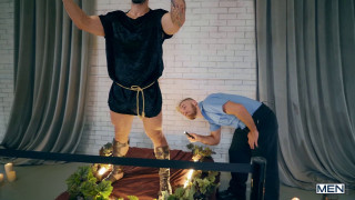 Finn Daniels is bored with his job as a museum watchman. The hours are long, the pay is terrible and (worst of all) the art is derivative. However, just when he's thinking of giving up and going back to flair bar tending school, the blonde man discovers that the latest installation might have more to it than meets the eye. When Finn gets too close to an alarmingly lifelike sculpture of Arad Winwin, the hairy-chested guard discovers that he might not be the only one bored in the gallery. Arad reminds Finn that for art to work for you, you have to work for art and offers the bored blonde man's throbbing dick. Finn worships Arad's cock, letting the chiseled dark-haired stud fuck his mouth and hole all over the gallery until Arad blows man's hot load all over Finn's eager face. - "Don't Touch The Art: Bareback" #drillmyhole #men