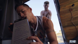 The beach is a great place to go fishing or to pick up a hot bottom, and for JJ Knight, it's both! JJ baits his hook with a big dildo and tosses it at a hot jogger and at a sexy guy sitting with a beverage, but he doesn't even get a nibble... until he sees Nic Sahara striding across the hand and expertly reels him in! The dildo got covered with sand, so JJ promises Nic a new one in man's van, and as Nic deepthroats the toy, JJ fucks Nic's butt doggystyle. Nic sucks JJ's cock and rides him, and they make the van rock as JJ breeds Nic's asshole till they both cum huge, sticky loads. - "Bottom Fishing Part 2" #drillmyhole #men