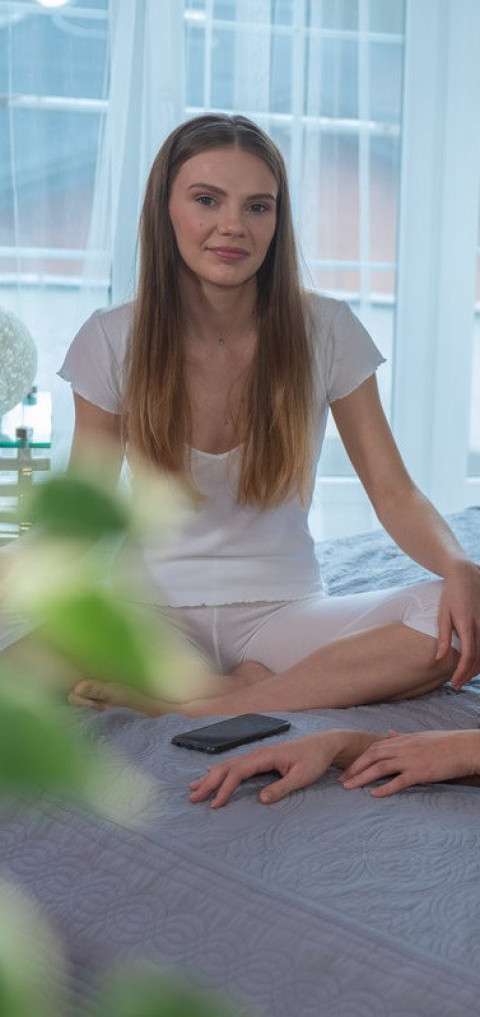 When Leanne Lace sees her lesbian lover Elina De Lion texting in bed, she gets a little envious. When Elina won't tell her who she is texting, Leanne takes matters into her own hands, and gets Elina's attention with a pounce! On top of each other, the Euro lesbians start making out. Taking control, Elina pulls down Leanne's shirt and worships her small tits, then takes down her lover's tights to eat her pussy. Next, Leanne worships Elina's tight butt, and the ladies then 69 and face sit on each other until mutual orgasm. - ''Pretty Euro lesbians young romance'' #sexyhub #lesbea
