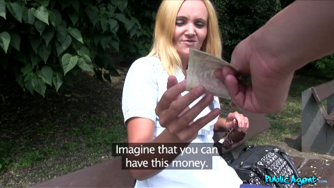 This was a real lucky fuck for me. I had no plans to fuck today, but I happened to spot a chick sitting by herself on a bench waiting for a her bus...worth a try, I thought. I approached her just to ask if it was OK to sit next to her. She was happy to move over and let me sit next to her. I told her that I was working for a statistics department of the local government. I asked her if I could ask her a few questions. She was happy to answer a few personal questions. I then changed my tone, and asked her if I could pay her to have sex with her. I offered her 10 000 Crowns. I took a bit of time to convince her that I would really give her that amount of money. One she finally agreed, I took her into the bushes and fucked her really hard from behind. I uploaded my load over her sexy little butt. - "Blonde's Bus Stop Pussy Pounding" #publicagent #fakehub