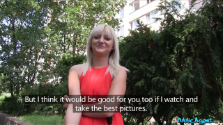 Walking down the street on a hot sunny day, I saw this hot blonde babe in pretty red dress. She was so hot! I could tell she had a stunning body under there! I told her I ran a 'modelling agency', at first she was a little hesitant. She didn't have a lot of time. I knew though I could get her interested, what woman doesn't wanna be a model?? Anyway, we got chatting and I told her about the business and that we were saving money on advertising by looking for girls on the street. She got more intrigued by it as I went on. Her eyes lit up though when I told her about the potential to earn some serious money. So, we went for a fast casting, just found some random staircase in this tower block. She took off her dress to reveal just as I had suspected. The hottest body ever! Her tits were perfect and her legs more so! I could feel my dick getting harder and harder! Anyway, she got dressed again and I told her straight up, I have a wad full of cash in my pocket, how about some fast sex right here, right now? When I showed her the cash she was on her knee's straight away! Oh my god, the blowjob she gave me was incredible! I got her up, pulled down her black, skimpy panties and slipped my cock deep inside her! We had to be quiet so no one could hear us but I had just enough time to fuck her in a few positions before emptying my load all over her chest! - "Slim blonde with perfect tits fucks a stranger" #publicagent #fakehub