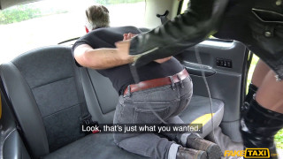 When I picked up leather-clad Luna Toxxxic on her way to work as a dominatrix, I had to ask if she could give me a sample! When I offered to trade her a free ride for a free spanking, she soon had me trussed up in the back of the cab like a Christmas turkey! I started to bottle it, but Luna wasn't letting me out that easily, giving my arse a good paddling. She got me nervous when she started running that paddle near my dick, and then she gave my nuts a squeeze! After that, it was my turn to play with her cunt. When I got her where I wanted her, I solved to turn the tables, spanking her arse and fingering her pussy until she called me "Master"! It turns out this domme enjoyed it when I took control, and rode my dick till she squirted. I had one of the biggest loads ever, so I guess you'll have to call me a switch! - "Tables are turned on dominatrix" #faketaxi #fakehub