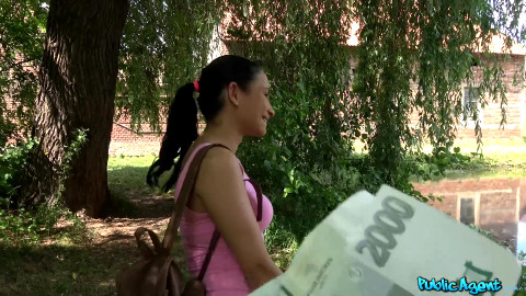 I saw Sanny Luke walking in the woods in a pink dress, so I asked if I could join her since we were walking in the same direction. Sanny was a student on her way to sunbathe nude, but didn't want to strip in front of me. For 4000, she flashed me her boobs and round butt, then for 10000 total she gave me a blowjob. Turned on, she let me fuck her until I came all over her body. - "Lakeside lust with sexy student" #publicagent #fakehub