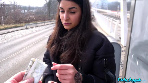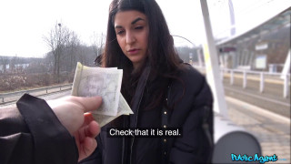 Sometime I like to take the tram and enjoy the thrill of a public wank. Today, while stroking my dick, I noticed Stacy Sommers staring at me. I asked her what she thought, and while she said it was indecent, her smile told me it turned her on. We got off the train and I asked her for two minutes of her time. Since she liked my dick so much it was only fair I see her boobs and butt too, so for from money, she flashed me the goods. Her tight body made my cock hard, so I offered her more money for a blowjob. One thing led to another, and before long I was balls deep in her tight pussy, giving her a warm creampie! - "Creampie climax after outdoor sex" #publicagent #fakehub