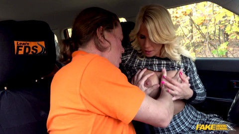 I had hot blonde MILF Tiffany Rousso in my car today for her finale lesson before her driving exam. I could tell she was a little shaky behind the wheel, but when she swerved to avoid something that clearly wasn't there, I got a little worried. She barely cleared an oncoming bus, and almost lost control on difficult terrain. I told Tiffany that I would have to fail her, and she responded by asking if I saw her boobs? Of course I saw her tits, I am not blind. She took my hand and put it on her boobs, then took out my dick and gave me a blowjob. I fucked her tight slit as she bounced her ass up and down on my dick, then after I brought her to orgasm in the backseat, I covered her in jizz. - "Hot blonde MILF wants her licence" #faketaxi #fakehub
