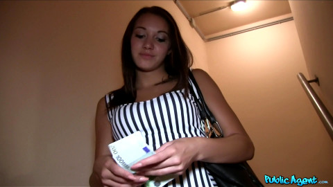 I was walking along the streets just as it got dark, people were going out for dinner, some out to bars. I was just taking a stroll when I saw this hot babe wearing a tight, spotted navy dress. I stopped her and told her I ran a modelling agency and I thought she'd be perfect to do some work for us. She'd clearly thought about this before. Although she was in a job that was getting her good money, she was intrigued by my offer. However, I said I would need to do a casting, just to make sure it was in fact a attractive body underneath that dress! Strictly professional of course. Anyway, we found this stairwell that was private enough, it was in a multi story car park. She quickly got her clothes off after I handed her over the money, she had a perfect butt! I asked her if she'd be up for a bit of fun, just some fast sex for a big wad of cash. She agreed, got on her knees, licked up my cock and begun sucking away! I got her up, pulled down her panties and slipped my dick in her slit from behind! She was loving it! We had a couple of close calls of people being nearby but I had enough time to fuck her in a couple of positions before cumming all over her butt! - "Pretty young brunette fucks stranger from behind in public" #publicagent #fakehub