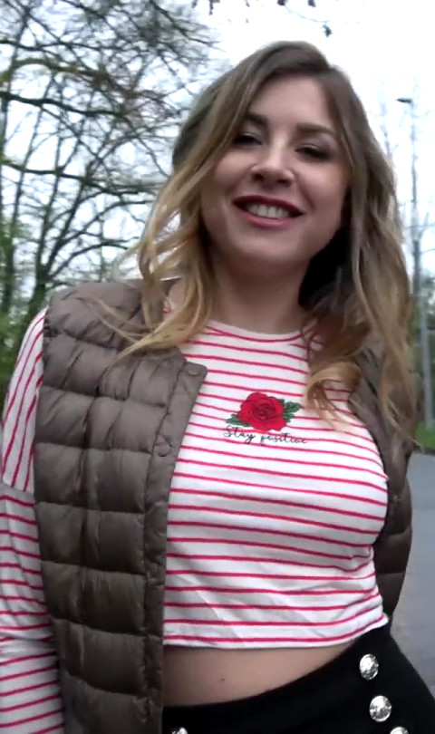 I saw Paulina Soul hanging out at the bus stop, and she looked very nice so I introduced myself. I was immediately struck by how coy and sassy she was, but her teasing just made me want her more. She wouldn't tell me what her job was, but I guessed she was in between a model and student. I offered her 300 euro to show me her tits and she did, then she noticed my cock got hard. For more money she gave me a blowjob, taking my dick down her throat, and then I fucked her doggystyle in the forest right near the road. Cars were going by, so we went to my car so I could creampie her. - "Russian loves daylight outdoor sex" #publicagent #fakehub