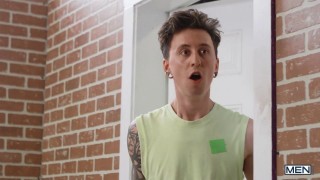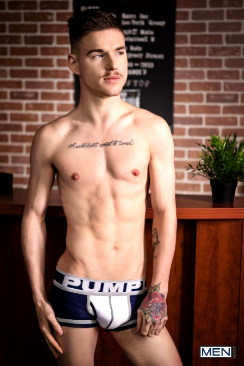 Bike messenger Malik Delgaty has everyone in the office staring at him when he comes in wearing only a small tank top and short shorts! All the guys ogle his big muscles and his impressive bulge and ask to touch his shirt, and Malik decides to show off a little bit. Boss Lev Ivankov is really into biking, and he's even more into sucking Malik's big cock! Malik bends the boss over the reception desk and fucks him doggystyle, then undresses him as the slim bottom rides him on a chair. Malik picks up Lev's legs to fuck him as he hangs off the edge of the desk, then puts him on the floor to penetrate that ass in missionary before he cums on the boss's face! - ''Free Wheeler Fuck'' #drillmyhole #men