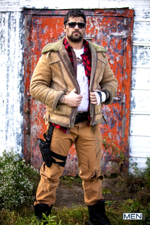 Wandering through the forest of the postapocalyptic landscape, sub Charly Willinsky has gone days without food, shelter... or cock. He spots a house and cautiously approaches, but inside he finds it's occupied by Ryan Bones, a muscular top. Charly is surprised to turn on the TV and find it playing porn, and while he's distracted, Ryan sneaks up on him and tells him to leave. Charly begs the sexy top to let him stay, offering to help slake his hunger for fucking. Ryan fucks Charly's ass with a dildo, then feeds him his cock before the bottom sits on his dick. They fuck doggystyle on the floor, and Charly rides Ryan, then takes a deep missionary pounding till he cums. Charly hungrily laps up Ryan's cum as the top gives him a facial. Ryan will let him stay after all! - ''Fuck the Apocalypse'' #drillmyhole #men