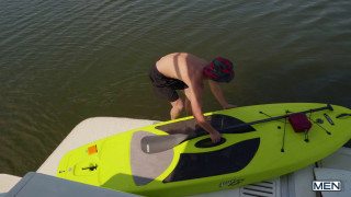 Jax Thirio is hoping to impress hottie Dante Colle by bringing him for a ride on his pal Johnny Rapid's yacht, but once they get out on the water Jax is a bit too shy to get things started until Johnny tells them to just fuck already! Dante is more than ready to go, sucking Jax's huge dick and telling the hot top to fuck his butt. After Dante rides Jax's cock, Jax makes Dante cum all over himself, then blows a big load on the hot bottom's chest just as Johnny paddles back to the yacht. - "Captain Rapid Part 2" #godsofmen #men