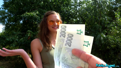 I saw a slim beautiful 19 year old dirty blonde named Stacy Cruz walking to the bus, so I stopped her and told her my friend owned a modeling agency. I offered to give her 5000 crowns for a casting right there, and was delighted by her big natural boobs and firm butt. I then offered her 10000 crowns to give me a blowjob. She was hesitant, but also turned on by the offer, so soon she was sucking my cock and taking my cock in her cunt doggystyle. I came all over her butt! - "Hot fuck makes perfect boobs bounce" #publicagent #fakehub #stacy-cruz-public-agent