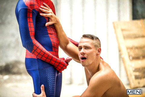 Spider releases tons of cum with the help of his nice helper Aston Springs. - ''Spiderman : A Gay XXX Parody Part 2'' #drillmyhole #men