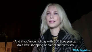 Walking in the street I saw this hot young blonde strolling by. I had to speak to her. I went up to her and told her I was a modelling agent and we were looking for new girls on the street. We got talking and she was one smart babe! Studying Physics in college, she wants to be an astronaut! I told her more about about what we do and she was very interested in doing a casting quickly and getting some cash. So we found a spot and I handed over a wad of cash and she whips off her top! She had no bra on! Her boobs were perfect! I knew we were alone so I asked her...would you be interested fucking me right here, right now for even more money? She was initially apprehensive because of the setting (being in public and all!) But i showed her the money and she put it away, got on her knees and begun sucking my dick! I pulled down her panties and played with her pussy before fucking her from behind, I got a great angle of my dick sliding in and out of her! She sat down on a step and sucked me off again before I blew my load all over her perfect boobs! - "Blonde Russian loves a public fuck" #publicagent #fakehub