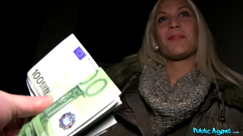 This Hungarian blonde was so hot, I had to stop her on the street with my story of looking for a new TV weather girl. She was interested in the chance to leave her job at a bakery and make more money, so I suggested she could make some cash right now by taking off her clothes for a private casting, and she was happy to come with me right away. We found a deserted rooftop with a beautiful view of Budapest, and soon she was giving me the full view of her toned, athletic body and sexy round arse. When I offered her more money for sex with me, she barely had to think about it before she had pulled out my hard dick and got on her knees to give me head! This girl had some serious deepthroat skills, but I didn't want to blow my load in her mouth before I fucked her. She bent over for me and next thing I knew my hard dick was in her hot little pussy. I wish I could have kept fucking her outside, but it was too cold! We went back into the stairwell where she rode my cock and then sucked me until I came all over her tongue! - "Rooftop Sex for Sexy Arsed Blonde" #publicagent #fakehub