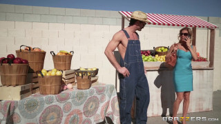 Alexis comes across an outdoor fruit stand and chats up the farmer Charles. She admires the fruit on display and he explains how he grows it all himself. Alexis is impressed and Charles proposes she feel the fruit in the basket on his lap. She sticks her hand inside and admires how firm and hard the fruit is, but notices that one seems a lot longer than the others. Charles smiles as Alexis looks down and realizes that she's been stroking his dick! She hits him with her purse, but can't seem to walk away empty handed. Alexis drags Charles back to her place so she can see for herself if his dick tastes as good as it feels. - "Plump As A Peach" #brazzersexxtra #brazzers #alexisfawxmom