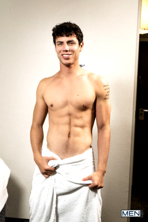 Brown-haired hunk Kaleb Stryker and hung redhead Calhoun Sawyer shower together, caressing each other's soapy bodies, and Kaleb's hands can't stop playing with Calhoun's big, hard dick. He grinds his ass against the top's cock and Calhoun teases Kaleb's hole with the tip, then slowly eases it inside. The guys dry off and head to the bedroom, where Kaleb gives Calhoun a thorough hand job, tantalizing him with little licks before sucking that dick. He bends over the side of the bed as Calhoun fucks him doggystyle, then rides him. Calhoun fucks the bottom mish till Kaleb cums and begs for a facial, so the redhead covers his pretty face in cum! - ''Hung Part 1: Bareback'' #drillmyhole #men.com