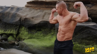 Muscular Jack is ready to take on toned Jamie after a long jog on the beach. Jamie doesn’t usually have sex with strangers, in fact “it’s my first time,” man says. “Do you like muscles?” Asks Jack. “Definitely,” responds his guy. - "Jack & Jamie: Bareback" #seancody