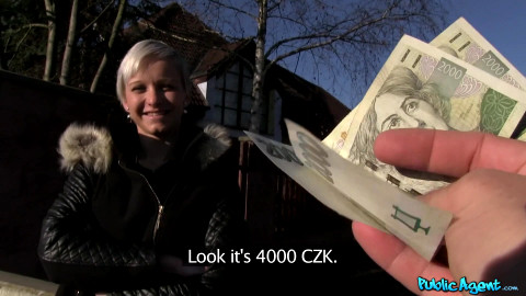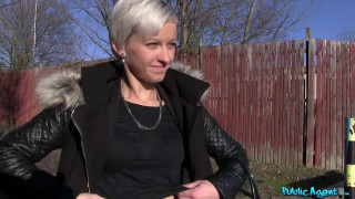 Janie was on her way back from an unsuccessful job interview when I saw her on the street. What a lucky break for both of us! With her short ice-blonde hair and all those piercings, I thought she must be a hardcore punk rock chick. But it turned out Janie was just a shy student who really needed tuition money. I paid her two weeks salary to show me her perky tits, but it took two month's salary to get my dick in her pretty mouth! The slim babe gave me a stellar blowjob, then let me fuck her doggystyle in the back of my car. Such a sweetheart, she was shy until the very end. But all that money certainly left her with a smile on her face. - "Her Pussy Gets Splattered with Spunk" #publicagent #fakehub