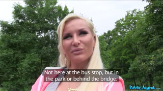Oh how I love to fuck slutty blonde women. I had to give her my bullshit story about my fake modelling agency, but this filthy blonde did not take too much convincing that I was a real modelling agent. She did not hesitate when I asked her to come with my behind a bridge to show me her figure. When she lifted up her t-shirt she revealed a huge pair of tits without a bra. Looking at her big tits gave me a hard-on straight away. There was only one place that my cock wanted to go and that was straight into her vagina. I showed her my big wedge of cash and she dropped to her knee's and deepthroats by fat dick before bending over and getting fucked from behind. - "Slutty looking blonde with big boobs fucking outdoors" #publicagent #fakehub