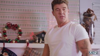Pierce Paris and JJ Knight have hung up the stockings, trimmed the tree, and left out the milk and cookies for Santa, and they're all ready for their first Christmas together, but the red-suited man who creeps into the house that night isn't Saint Nick, but sinner Michael Del Ray! Michael helps himself to some treats and opens a present, soon fucking his ass with the dildo JJ intended for Pierce. Pierce comes downstairs and catches the burglar red-handed, so he sticks his candy cane up Michael's ass...and Michael loves it! Soon it's JJ who hears a noise as Pierce pounds the intruder's hole, and the couple make their holiday merry by fucking Michael's mouth and ass till he cums, then leaving huge snow-white loads all over his face. - ''Jingle Balls Cock: Bareback'' #drillmyhole #men
