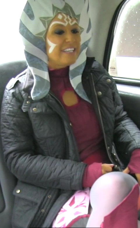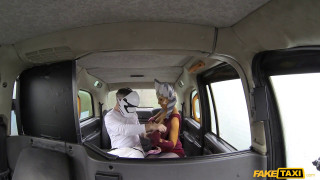 This customer stood out a mile away, and I knew exactly where she was going. She seemed a bit confused as I already knew where she needed to go, but a mutual friend was having a Star Whores swingers party which I was also invited to. She was right up my street with her big boobs and her costume gave me a right hard on. Then I get a text from Tracy, the party organizer, to say that the party had been delayed by an hour. This didn't phase me as it gave me more time to sweet talk her into getting this party began a little earlier. - "Star Whores the cock awakens" #faketaxi #fakehub