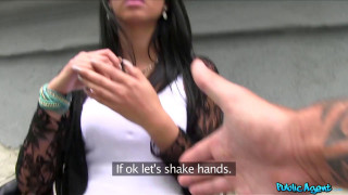 I was walking along with my camera when I saw this hot black haired babe, she had the best body. So hot. I stopped her and started chatting to her. Luckily we were able to communicate in English because I don't speak her native tongue, Hungarian. So I told her about this modelling business and I could tell she was in to it. I told her about how much she could earn and she was keen to do a small casting somewhere nearby, as long as it was fast! So, we found this little staircase, we could see up or down and hear anyone coming. She took off her clothes and showed me her perfect body up close! Wow! She had lovely white underwear on. After I got the shots I needed I asked her if she'd be interested in having some more fun for a load more cash. Once she saw what I had to offer she was already on her knees wrapping her lips around my dick! Looking up at me with those 'come to bed' eyes! I pulled her up and pulled down her skimpy white panties and began giving it to her from behind, she was loving it! I got on the floor and got her to ride me, she got on top of my dick and I pulled her tits out of her blouse. They felt so nice! We got up again and I fucked her from behind for a bit before emptying my load all over her butt! - "Black haired babe fucks stranger for cash in public" #publicagent #fakehub