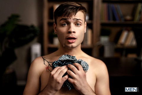After Ryan Bailey is caught fucking in the library, he's dragged to the office of Dean Devy for his punishment. Devy says there's one way Ryan can avoid expulsion and lays a wooden paddle on his desk, but to his surprise the twink picks it up and slaps it against his rump, excited to get started! The light paddling Devy starts with isn't getting the message across, so Ryan strips and lies over the desk for a firm punishment, then gets an over-the-knee spanking to boot. Ryan eagerly sucks the dean's cock, then Devy bends him over to pound that ass. The dean fucks the twink on his desk, then Ryan takes a hot facial as he jacks himself off till he cums. #mencom