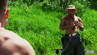 Muscle stud William Seed is the complete angler, taking a seat by the river in his waders to try and catch something worth writing house about. However, when mustached hottie Matthew Parker sits down beside him the men realize they have bigger fish to fry than the ones in the river. Matthew pulls down William's overalls and eagerly sucks his thick dick on the bank. William bends the brown haired and athletic hottie, hammering his cock deep into Matthew's tight asshole while the hungry bottom begs for more. Matthew worships William's cock with his mouth and hole until he shoots a thick, creamy cumshot across man's face. - "Quite The Catch" #drillmyhole #men