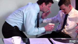 When Paddy O’Brian decides it’s time for a new assistant, Mark Sanz finds himself in the right place at the right time. Mark sucks Paddy’s throbbing dick, but that alone is not enough to land the job. Paddy moves on to plowing Mark’s tight, pink asshole before shooting his hot load all over. - ''Naked Promotion'' #menofuk #men