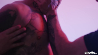Bo Sinn calls up a number he finds advertising a glory hole service. When he gets there his hands are tied, his mouth taped shut and his dick shoved through a gloryhole to the eager mouth of Manuel Skye on the other side. Bo lets Manuel give him a deep and sloppy blowjob, but soon he wants more. The tattooed power top breaks free from his ropes, breaks down the wall and takes control of Manuel. Bo shoves his long cock down Manuel's throat with his signature mercilessness, making the sexy bearded stud gag on man's massive cock. Bo takes the cords that were around his wrists and wraps them around Manuel's neck and dick while he plows into the toned stud's eager ass. Manuel loves every second getting dominated by Bo, his eyes rolling into the back of his head as Bo fucks the cum out of him over the bath sink. - "On The Other Side: Bareback" #bromous #men